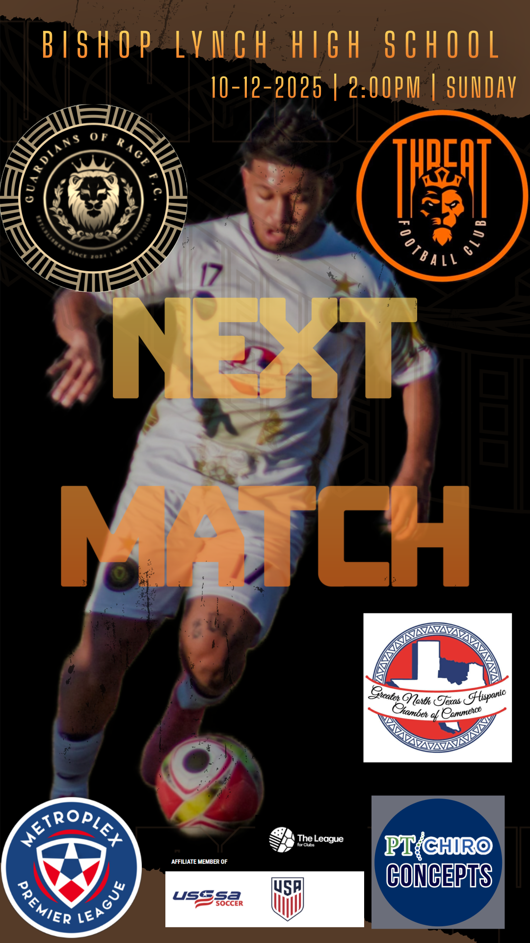 Guardians of Rage F.C. vs. Threat F.C. | Sunday, October 12th | Bishop Lynch High School | 9750 Ferguson Rd, Dallas, TX 75228