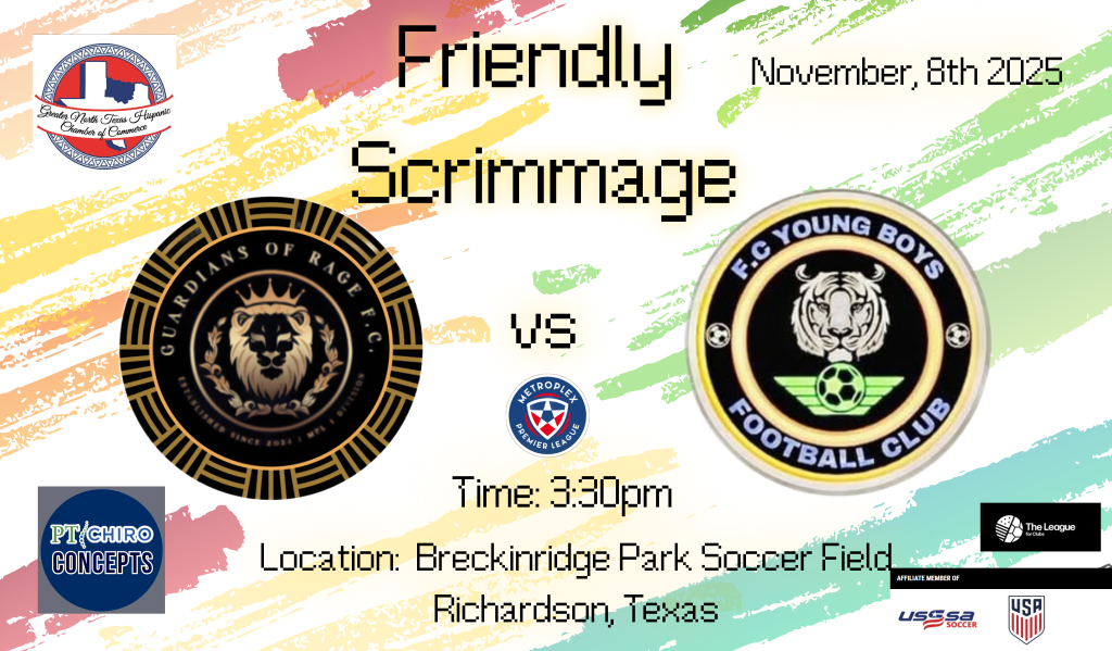 Guardians of Rage F.C. vs. F.C. Young Boys | Saturday, November 8th | Breckinridge Park Soccer Field | Richardson, Tx.